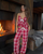Regular fit plaid flannel pyjama set. The pyjama set is red and includes a pyjama top with adjustable straps. It has short pyjama shorts or trousers with a low waist and a ruffled hem.